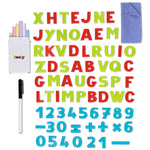 - Setul include 72 de litere si numere magnetice, 6 crete colorate, 1 marker si 1 carpa