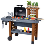 - Contine 43 de accesorii: 2 farfurii, tacamuri, 2 pahare, o masa de taiat, sosuri, frunze de salata, cartofi prajiti, carnati, etc.