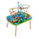 Exploreaza jungla si animalele ei cu aceasta masa de joaca de dimensiunea unui copil. Conduce trenul prin arcade si fa pasarile sa zboare. Dar ai grija la maimutele obraznice care incearca sa blocheze drumul!