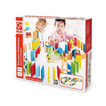 Construieste-ti pista de curse de domino dorita cu peste 100 de bucati de blocuri de lemn colorate.