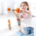 O jucarie distractiva pentru invatare! Copiii de patru ani si mai mult pot invata fizica de baza prin experimente care implica un sistem de antrenare cu roti si o parghie.