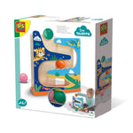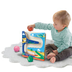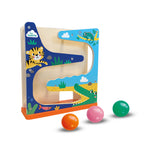 Aceasta pista de mingi distractiva consta dintr-un cadru din lemn cu un imprimeu frumos si trei bile din lemn. Bilele pot fi plasate in partea de sus a pistei si le puteti urmari pe toate pana jos in gura crocodilului. Copiii se pot distra ore cu aceasta jucarie in timp ce isi exerseaza abilitatile motorii fine.