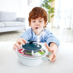 Micutului tau ii place sa gateasca? Acest adorabil set de oale ii ajuta sa invete despre cum sa foloseasca ingredientele proaspete si despre procesul de gatit. Face bule si produce o ceata rece care arata ca un abur adevarat!
