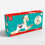 Lemnul durabil, in culori moi, potrivite, este rezistent si construit sa reziste. Bebelusul sau micutul tau va calari intr-o furtuna, iar jucaria se poate descurca!