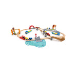 Set de jucarie din lemn - port cu trenuri, vapoare si camioane