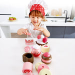 Jucarie din lemn - Set desert pentru copii cu capsuni (7 piese) - Micutul tau se va distra atat de mult cu aceasta jucarie adorabila de joc de rol si nici macar nu vor sti ca se implica de fapt intr-o dezvoltare cruciala. Abilitatile lor motorii fine se vor imbunatati de fiecare data cand se joaca!