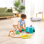 Calatoriti prin vulcan, in cascada si peste deal - si bucurati-va de efectele sonore in timp ce trenul se misca! Acest lucru ajuta la dezvoltarea recunoasterii culorilor, a gandirii spatiale, a abilitatilor motorii fine, a limbajului si a abilitatilor sociale ale micutului tau. Natura deschisa a jucariei ii permite copilului tau sa fie creativ! Toate seturile de cale ferata Hape pot fi conectate, astfel incat sa puteti aduce si alte trenuri si personaje la calatorie!