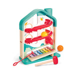 Jucarie din lemn pentru copii - Circuit muzical cu bile - Copiii invata despre relatiile cauza-efect in timp ce observa cum actiunile lor, cum ar fi rostogolirea mingilor sau jocul la xilofon, produc anumite rezultate.