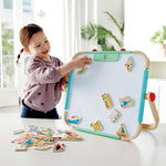 Jucarie din lemn copii - Magneti cu vehicule (30 piese) - Acest set include 30 de vehicule clasice, inclusiv masini, motociclete, avioane, barci si chiar un OZN! Pe masura ce copiii invata despre diferite moduri de transport, ei isi pot crea propriile povesti bazate pe vehicule, ceea ce le imbunatateste abilitatile lingvistice si de comunicare. Pe masura ce degetele mici ridica si aranjeaza vehiculele, isi vor imbunatati puterea degetelor si coordonarea mana-ochi. Indiferent daca ii folositi pe sevalet Hape sau ca jucarie pentru frigider, acesti magneti se vor lipi de orice suprafata pe baza de metal. Dimensiunea si forma acestor magneti sunt usor de miscat pentru degetele mici, iar culorile stralucitoare le aprind imaginatia si creativitatea. Baza durabila din lemn a acestui puzzle si suportul magnetic puternic vor rezista ore intregi de joc. Dimensiuni cutie: L: 24, l: 4, H: 24 cm.
