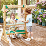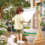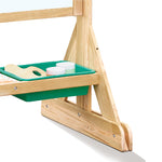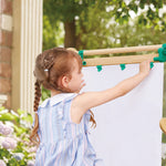 Jucarie din lemn copii - Sevalet de arta in aer liber - Inclus cu acest sevalet clasic de exterior este o cuva de plastic cu capac, o rola pentru vopsea din spuma, doua tavi pentru vopsea, doua agrafe de hartie si agrafe in forma de frunza.