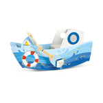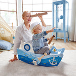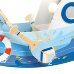 Jucarie din lemn pentru copii - Barca capitanului. Prin vaslit si volan, copiii isi pot dezvolta abilitatile motorii fine si grosiere.