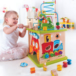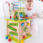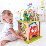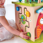 Cu cinci fete care prezinta labirinturi, forme si creaturi, acest cub de activitati ofera experiente de joc diverse.