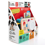 Rasuciti lentilele pentru lumini, nume de culori si sunete ale camerei. Apasati butonul pentru a vedea o imagine pop-up pentru invatarea cauzei si efectului. Oglinda pe spate pentru autodescoperire. Schimbati limbile: engleza, spaniola, franceza si germana. Curea de mana pentru joaca din mers.