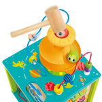 Combinand mai multe activitati, cum ar fi bile, labirinturi complicate de margele, sortare blocuri, blocuri flip si un abac, aceasta jucarie ofera o gama diversa si captivanta de experiente de joc intr-un singur design compact.