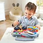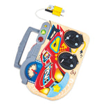Aceasta tabla de curse cu tematica de reparatii auto ofera copiilor o experienta captivanta de curse, combinand diverse caracteristici interactive intr-o scena de curse plina de viata pentru a inspira jocul creativ. Echipata cu sapte tipuri diferite de suruburi prietenoase pentru copii pe anvelope, impreuna cu alte unelte, aceasta tabla de curse ii ajuta pe copii sa isi imbunatateasca abilitatile motorii fine pe masura ce se joaca si cresc. Capacul motorului se deschide pentru a dezvalui doua fire. Indrumati-va copilul sa potriveasca firele cu gaurile corespunzatoare, codificate prin culori. Cand cheia este rotita, luminile se aprind, iar vehiculul produce un sunet realist de pornire. Bara de protectie fata este conceputa pentru a fi indepartata cu usurinta, adaugand un nivel interesant experientei de joc.
