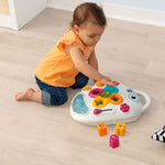 - Acesta va reda un sunet placut, daca copilul va aseza cuburile in jucaria formei, ajutandu-l sa distinga culorile si formele intr-un mod interactiv