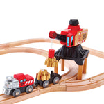 Pe fiecare dintre seturile de roti se afla un stift metalic care ii permite sa fie ridicat de macaralele magnetice ale lui Hape. Potrivit pentru joc independent sau compatibil cu Hape si alte marci de cai ferate din lemn.