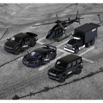 - Setul include: Mercedes-Benz G 500, Ford F-150 Raptor, Bugatti Chiron Pur Sport, Mack Granite, Bell 429