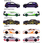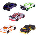 - Setul include: Renault Clio 16S in negru, Porsche 911 GT3 Cup in gri, Nissan GT-R in alb, Bugatti Chiron Pur Sport in alb, Chevrolet Camaro in negru