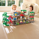 Acest set de jucarii cu trenuri prezinta o structura urbana cu patru etaje, inclusiv un Depozit de Intretinere deasupra, o Statie de Spalare si Realimentare cu Trenuri, o Scena Urbana Aglomerata si un Metrou la parter, oferind o experienta de joc verticala!
